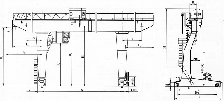門式起重機由橋梁、大車運行機構(gòu)、小車、電氣設(shè)備組成。橋架采用箱形焊接結(jié)構(gòu),大車運行機構(gòu)采用分別驅(qū)動。全部機構(gòu)均在操縱室內(nèi)操縱。門式起重機導(dǎo)電形式分為電纜和滑觸線兩種,訂貨時任選一種。選用本起重機時須填寫訂貨規(guī)范表,須注明使用時工作環(huán)境的*低溫度和*高溫度以及電源等。地鐵施工中吊管片用的較多,