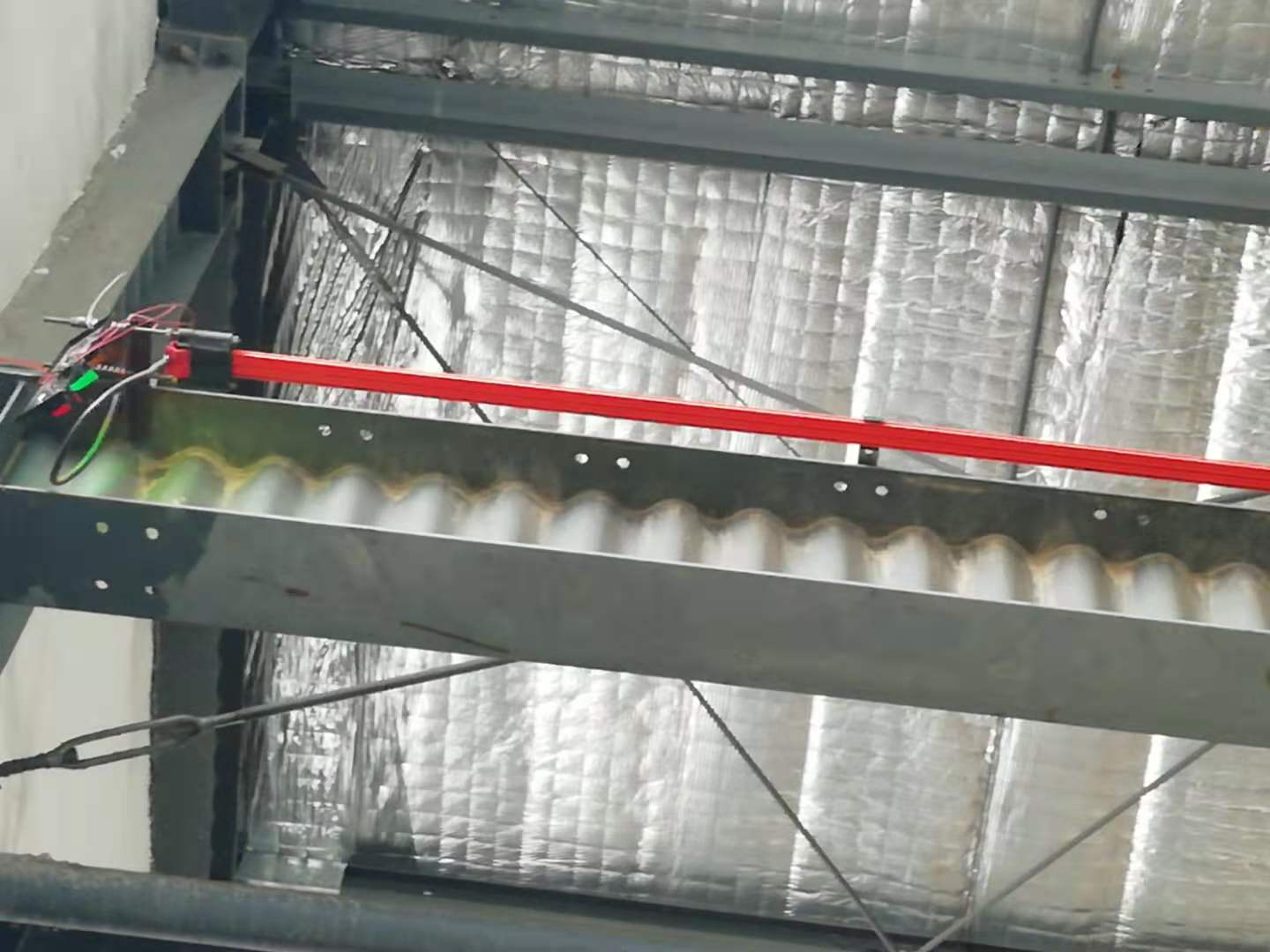 上圖中順著軌道方向扁紅色的長(zhǎng)長(zhǎng)的是安全無接縫滑觸線,滑觸線通過鐵的挑線架是固定在承重梁上,滑觸線是固定的,它是供單梁起重機(jī)的傳輸供電用,有一個(gè)集電器滑刀沿著滑觸線隨起重機(jī)移動(dòng)傳輸380伏的電,此電供給到起重機(jī)上的DK電氣箱。假如單梁起重機(jī)運(yùn)行100米,無接縫滑觸線的長(zhǎng)度就是100米。此滑觸線沒有接頭所以稱無接縫滑觸線,比較安全,所以全稱是安全無接縫滑觸線。